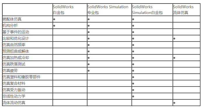SolidWorks Simulation专业包 | SolidWorks Simulation白金包 | SolidWorks 流体仿真 | |